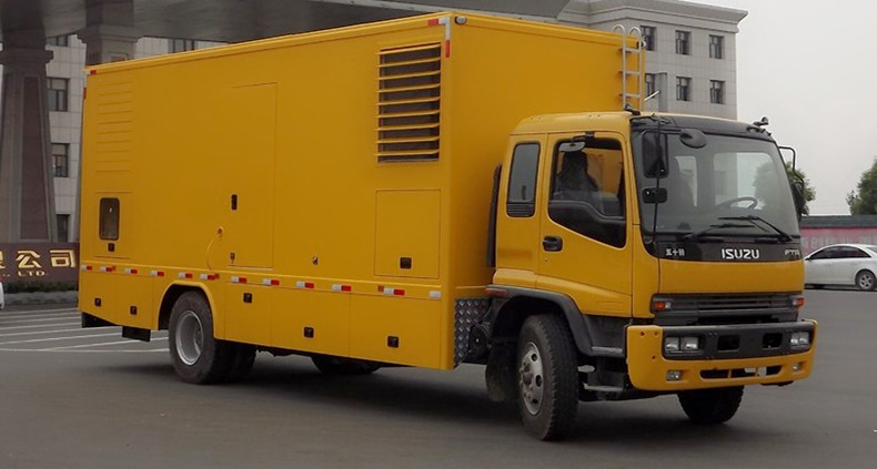 2、慶鈴FTR應急電源車的設計、選材、奧龍汽車公司已經充分考慮了其使用環境,車輛具有防雨、防雪、隔熱、防曬、防腐、防震抗沖擊等特點,汽車可行駛在各種道路條件下不致損壞機組,低噪音車載電站具有全天候(即臺風、風沙、大雨等環境下)的使用特性。
